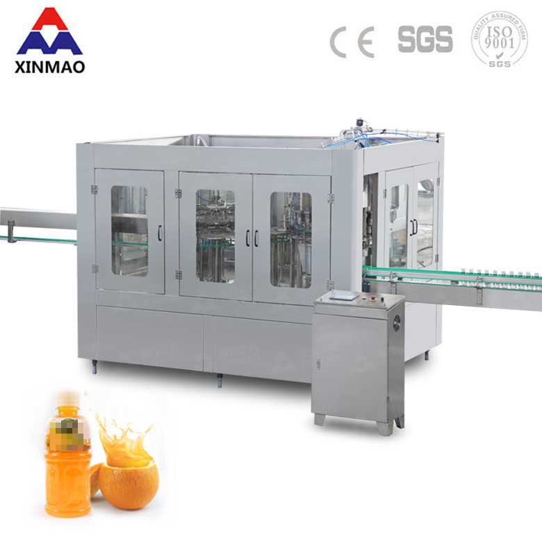全自動果汁飲料設備的灌裝部分實現將物料灌裝到由沖瓶機送過來的洗好的瓶子中。果汁飲料灌裝設備主要適用于灌裝果汁、蘋果汁、橙汁、草莓汁等不含氣飲料的塑料瓶灌裝。